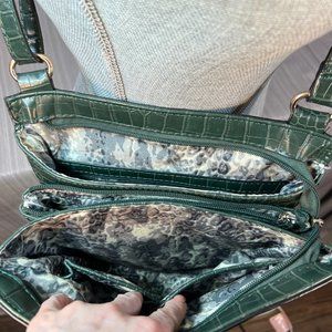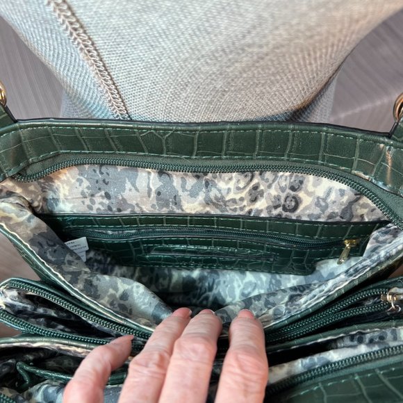 - smaller zippered purse in the middle (with 4 credit card slots in the side panel) between 2 larger bags (the most secure of the "bags" due to having its own zipper)