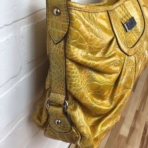 KGB Studio Yellow Shoulder Handbag - Vegan Leather Croco Pattern