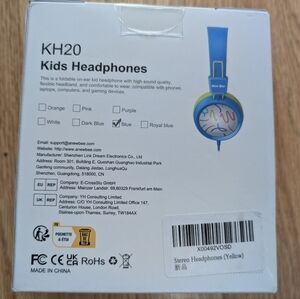The KH20 Kids Headphones offer vibrant sound and comfort. Designed in a playful blue and yellow color scheme, these headphones are perfect for young listeners. Durable and lightweight, they ensure a snug fit for all-day wear.