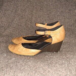 KHRIO D'Orsay Type Sandals-Natural Distressed Leather-Wedge-Sz 40-Near Mint