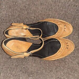 KHRIO D'Orsay Type Sandals-Natural Distressed Leather-Wedge-Sz 40-Near Mint