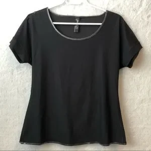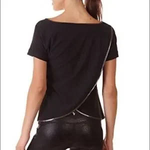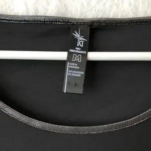Metallic-Trim Performance Top with cross-crossed layered back.