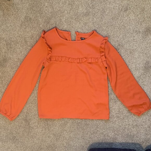 orange long-sleeved T-shirt, very light, 100% polyester. Pre-owned condition with no damage nor stains. Here are some measurements: