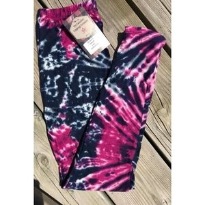 KID'S PInk & Purple Tye Dye Multi Print Full Length Leggings Size S/M NWT