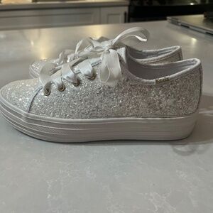 KIDS platform sparkly keds lace up sneaker 3 silver wedding flower girl bride