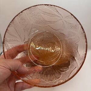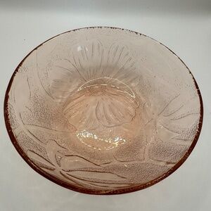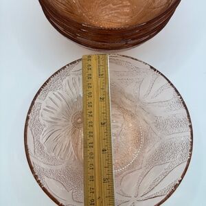 KIG Indonesia Pink Glass Hibiscus Embossed Bowls. Set of 5, 6.5" diameter.