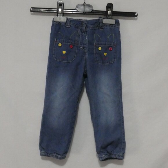 KIMBALOO | 24 months | Lined Blue Denim Jeans | Cute Bunny Pocket Detail Front