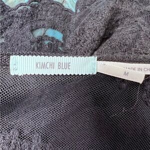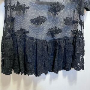 KIMCHI Blu Black Lace Sheer Peplum Top Size Medium