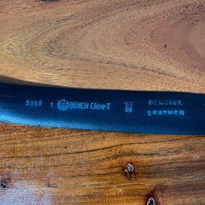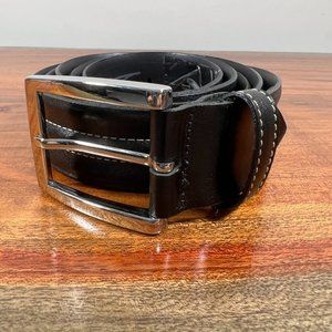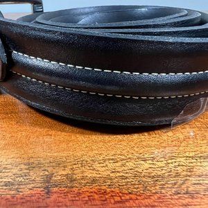 KINGSPORT BENCH CRAFT Black Genuine Leather Cream Stitch Silver Brass Buckle (50