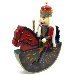 KIRKLAND NUTCRACKER King Wooden Rocking Horse Movable Mouth 18" Tall Boxed