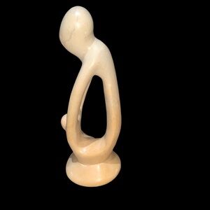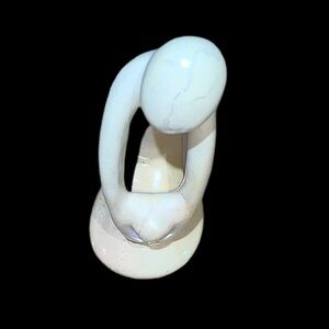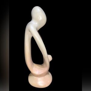 Created in Kisii, Kenya, this soapstone carving features a parent and child holding hands. Expertly crafted, this beige-ivory carving is approximately 5.5” tall and 2-2.5” wide. It is in excellent condition with only naturally occurring pits in the stone.