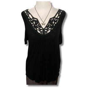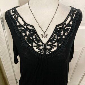 KISMET Black cold shoulder top with crochet neckline ~ Goth MEDIUM LARGE shirt