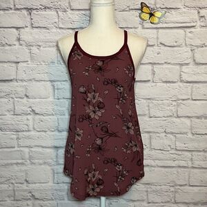 Style: Woven Front, Knit Back, Cut-Out Back Detail, High-Low Shirttail Hem, Floral Print