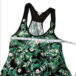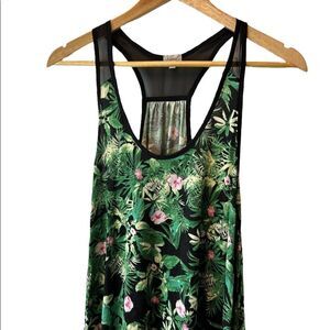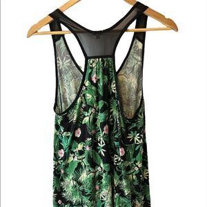 KISMET Green Tropical Print Racerback Mesh Top Loose Fit Tank Top S