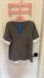 KIT and ACE cashmere cotton blend short sleeve shirt top, round neck, grey with white contrast on sleeves and hemline, size XL