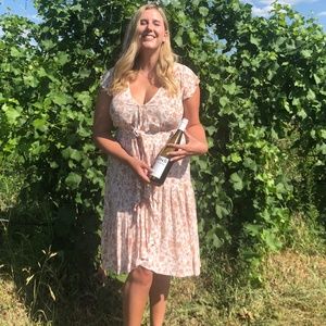 KIVARI Pink and white flutter sleeve key hole tie front midi dress size L