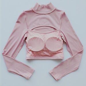 🌟HOST PICK!🌟Brami cropped turtleneck by KLASSY Network features a built in medium support bra and peek-a-boo style. Long sleeves, double lined rubbed fabric for additional support. Rayon/Spandex construction. Light pink color.