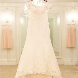 More pictures for my Sareh Nouri wedding gown purchased at Kleinfeld bridal. It would bring me great joy to see this gorgeous dress find new wedding bliss in someone else's life. Going to Kleinfeld's was such a dream. It is an experience I feel every woman that desires it, should have the opportunity to explore, The quality of this dress is phenomenal. The detail, the unique lace, it is a classic beauty. Selling. Needs a loving home.