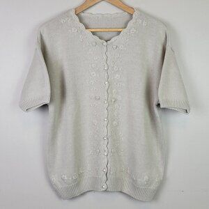 KNIT button up short sleeve embroidered cardigan sweater top M