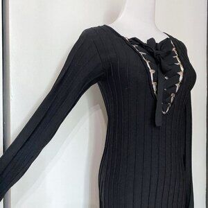 KNITZ FOR LOVE & LEMONS BLACK RIBBED KNIT LACE UP DRESS - XS