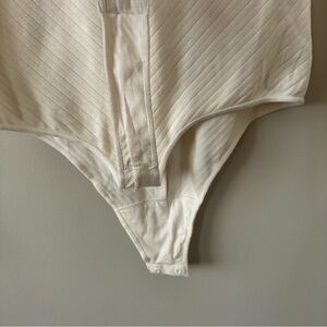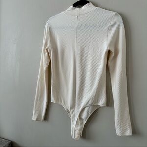 A bangin’ bodysuit in a soft ribbed cotton blend fully loaded with stylish details like a mock neck and thong back.