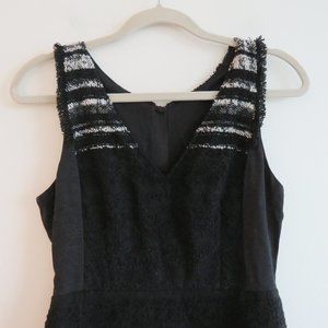 KOBI HALPERIN Black Textured Tweed Wool Blend Fit and Flare Dress Office Siren