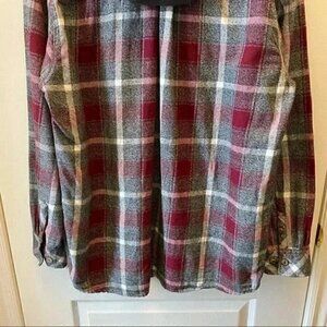 KOLBY Mens Flannel Shirt Button Up Shacket Hoodie Burgundy Grey Plaid Large
