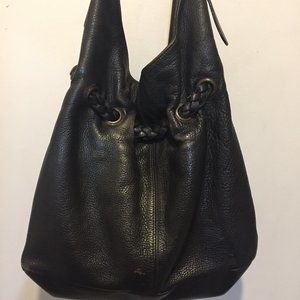 Kooba Leather Handbag, Browm Leather, Crossbody Braided Strap, Lining, Inside Pockets, Dye on Leather Faded, inside Small Rip Open, Good Designed, Nice Bag.