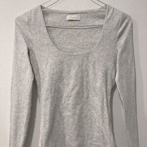 KOOKAÏ Riley Light Gray Long Sleeve Scoop-Neck Tee Top