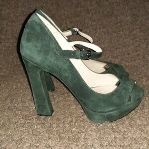 KORS MICHAEL KORS-Padova-Dark Green Suede Platform Pumps-Near Mint-Size 6M