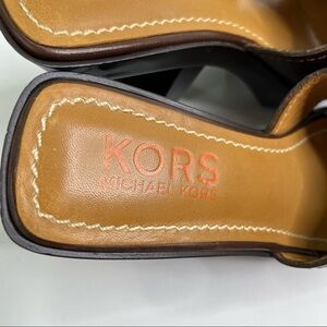 KORS Michael Kors Brown Leather 70s Retro Geometric Cut-out Platform Sandals