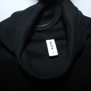 This is the perfect turtleneck, I have two and I don't need two of them. This one was only worn ONCE. It fits true to size. KOTN describes it as, "Our best-selling Fitted Turtleneck is a timeless essential made from our 100% cotton micro-rib jersey with natural stretch for all-day comfort. Featuring a fold down neck and a fitted silhouette, it's perfect on its own or as a layering piece."