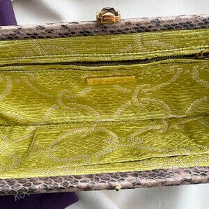 KOTUR Straw Evening Clutch w Snakeskin Trim.