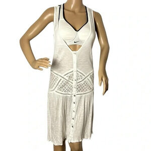 KOY RESORT WHITE SM, crochet ,button front beach cover, deep V-neck