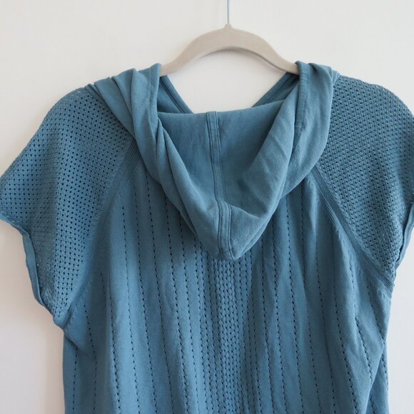 KRIMSON KLOVER Hooded Short Sleeve Top in Teal Outdoor Athleisure - Size M