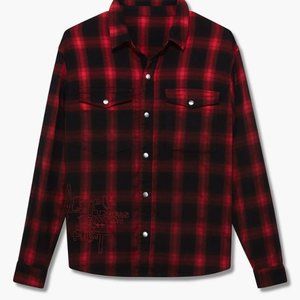 The Consciousness Long Sleeve Shirt Red Plaid is a relaxed fit, long sleeve shirt with metal button fastening. This style is made from a 100% cotton plaid flannel with a dip-dye ombre effect and placement embroidery and signature Ksubi branding.