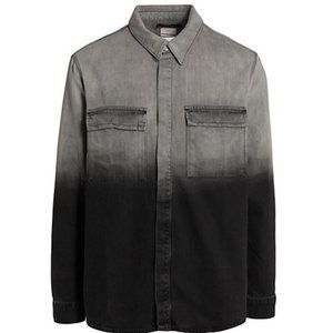 Button-through long-sleeve shirt in a relaxed fit with patch pockets and shaped hem. Made from a premium European denim shirting. Features ombré bleach effect and lazer burnout.