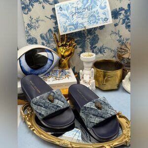 🆕 KURT GEIGER LONDON 🧿 NWOB Blue Denim Meena Eagle Slides, Sz EU 37 US 7