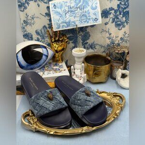 🆕 KURT GEIGER LONDON 🧿 NWOB Blue Denim Meena Eagle Slides, Sz EU 41 US10