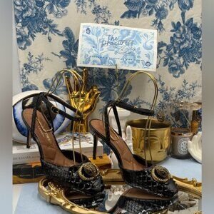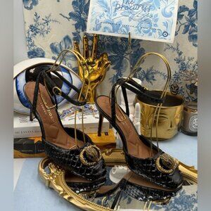 🆕 KURT GEIGER LONDON 🧿 NWOB Chelsea Ankle Strap Heel, Black Snakeskin, Sz 37 7