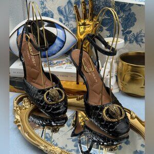 KURT GEIGER LONDON Chelsea Ankle Strap Heel, Black Snakeskin