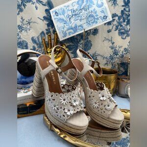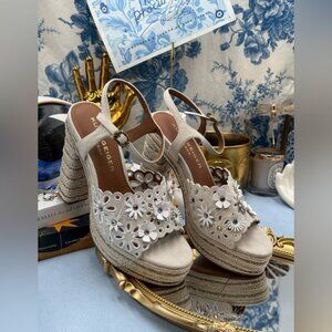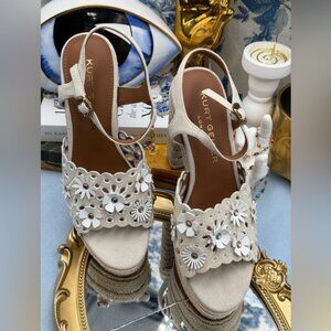 🆕 KURT GEIGER LONDON 🧿 NWOB Flower Platform Sandal, Bone Suede Sz EU 37 US 7