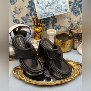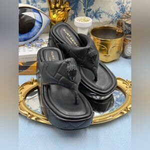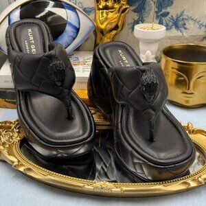 🆕 KURT GEIGER LONDON 🧿 NWOB Kensington Puff Wedge Sandal, Black - Sz EU37 US 7
