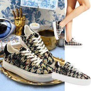 🆕 KURT GEIGER LONDON 🧿 NWOB Laney Eye Gold Rainbow Tweed Sneaker, Sz 37 US 7