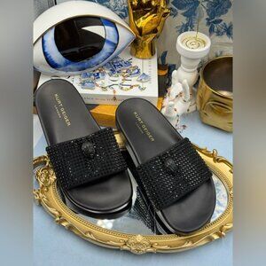 🆕 KURT GEIGER LONDON 🧿 NWOB Meena Eagle Black Crystal Studded Slide, Sz US 7.5