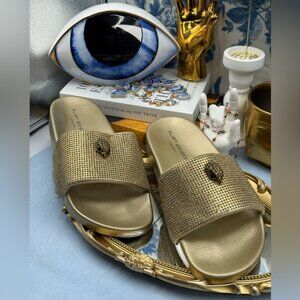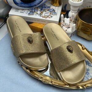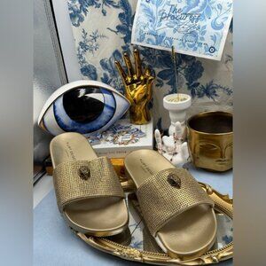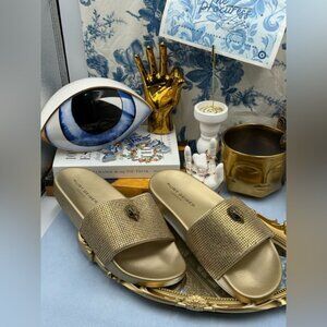🆕 KURT GEIGER LONDON 🧿 NWOB Meena Eagle Gold Crystal Studded Slide, Sz US 12