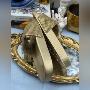 🆕 KURT GEIGER LONDON 🧿 NWOB Meena Eagle Gold Crystal Studded Slide, Sz US 7.5