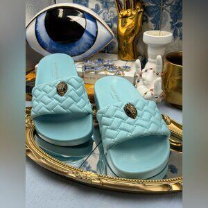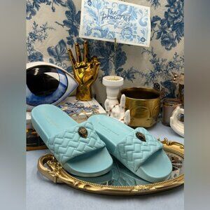 🆕 KURT GEIGER LONDON 🧿 NWOB Meena Eagle Quilted Slides, Blue - Sz EU 37 US 7