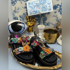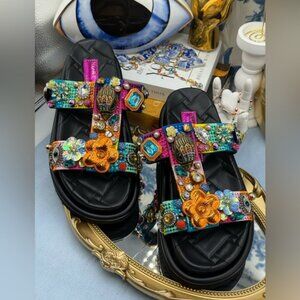 🆕 KURT GEIGER LONDON 🧿 NWOB Orson Tutti Frutti Charm Sandal, Sz EU37 US 7