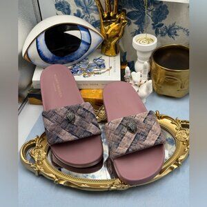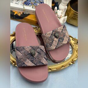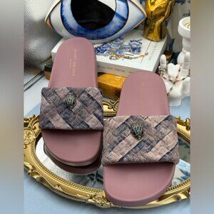 🆕 KURT GEIGER LONDON 🧿 NWOB Pink Bleach Denim Meena Eagle Slides, Sz 41 US10